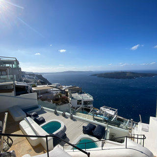 We explored a couple areas in Oia, we saw the postcard blue church and the all white houses. Also jumped over a fence to get into the old ruins, one of the shop owners told us to do it. It was so beautiful. It was on a little peninsula so the view was amazing.
